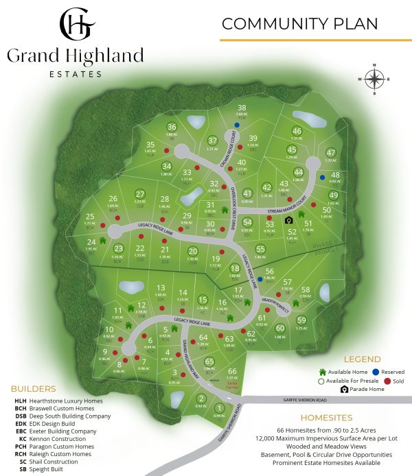 Grand Highland Estates is a private gated community just 6 miles from Historic Downtown Wake Forest, and convenient to Raleigh and the surrounding Triangle Area. This new luxury community is the ideal place to live your best life in an environment of beauty, privacy, tranquility, and luxury.